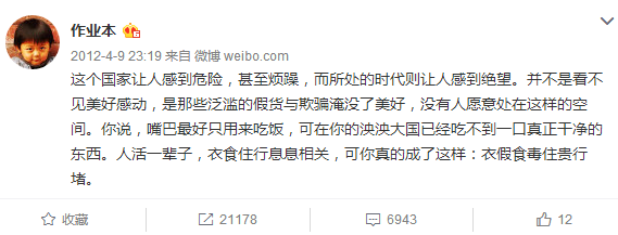 千钧客:【作业本虽认判道歉,但无法弥补其微博言行带来的伤害。诋毁烈士只是其微博作恶个案。他曾长期和李开复共用微博帐号,常年误导舆论,极力蛊惑年轻一代:这个国家和你没有关系!他给这个社会带来的伤害难以弥补,这些败类应终生为其所作的恶买单。新浪微博也有责任,如态度鲜明,应对其销号。】